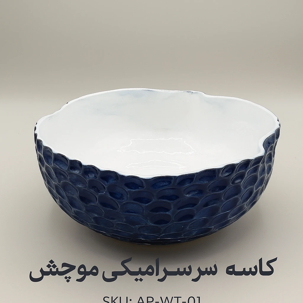 کاسه سرامیکی سری موجتراش یکی از آثار دستساز برند Apameh است؛قطعهای با فرم ارگانیک و بافت تراشخورده که با الهام از حرکت موجها شکل گرفته.لعاب آبیِ عمیق روی بدنه، همراه با لعاب سفید براق درون ظرف، جلوهای لوکس و چشمنواز ایجاد کرده که هر بار زیر نور، درخششی متفاوت دارد.این محصول بهصورت کامل با دست ساخته شده و هر کاسه، در جزئیات بافت و موجها منحصربهفرد است.مناسب سرو، دکوراسیون، و هدیههای خاص.────